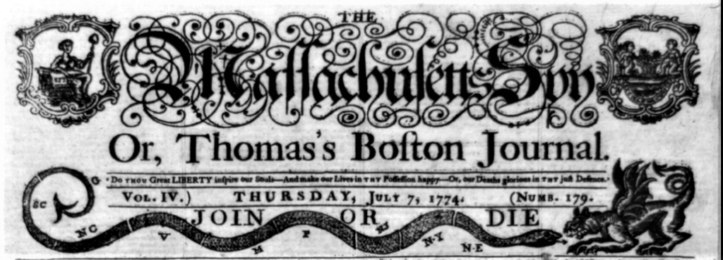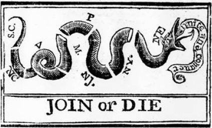 L’idée du serpent segmenté fut reprise en 1774 pour promouvoir l’union des états: